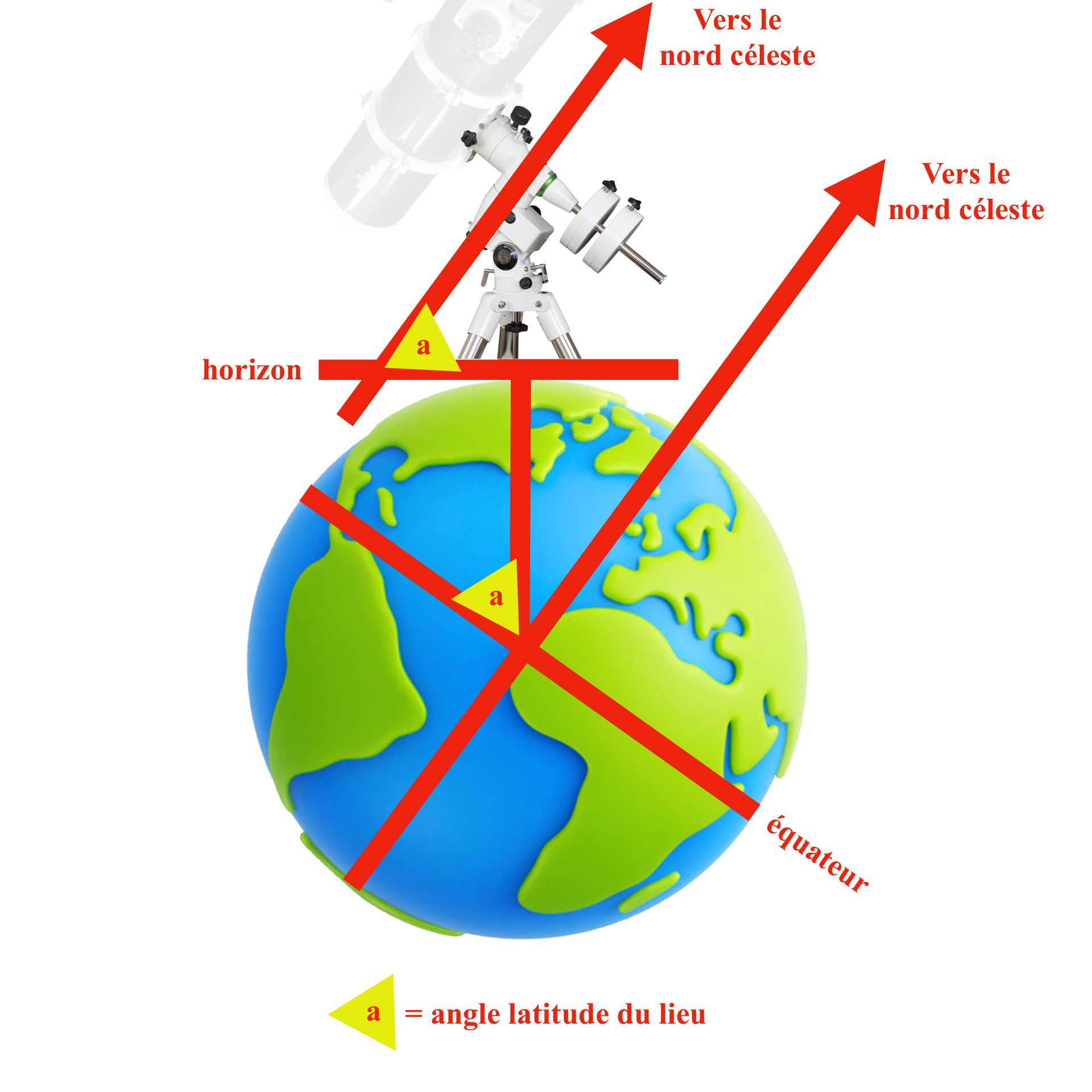 L’axe de latitude de votre lieu d’observation sert à pointer l’étoile polaire verticalement